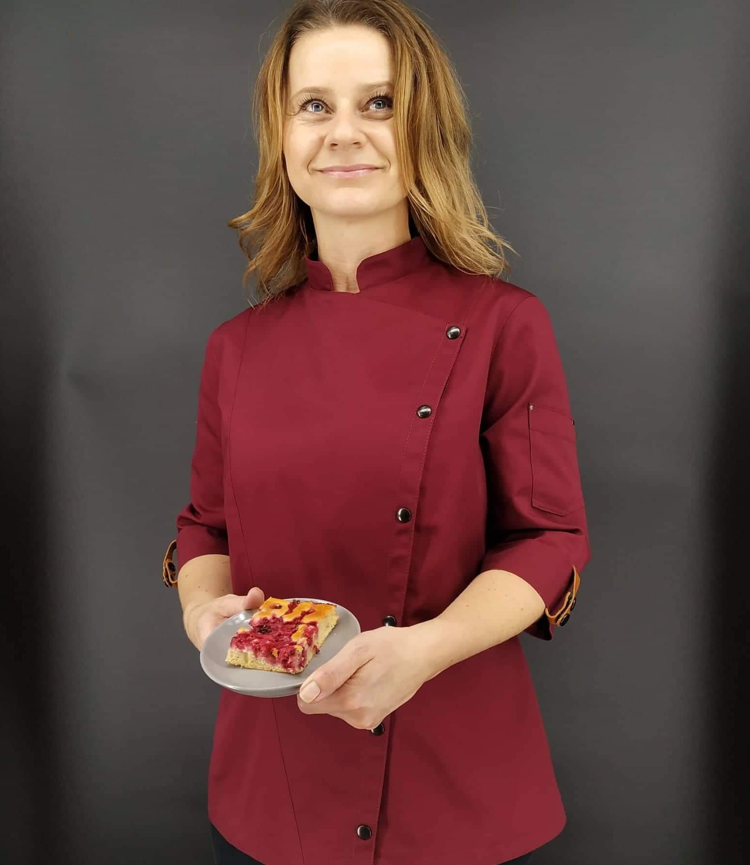 Designový jednořadý rondon, perfektní jak pro servis, tak do kuchyně. Extrémně slušivý střih, šikmé zapínání na kovové patenty. Kapsa na rukávu s přihrádkou pro pero je zpevněná nýtky. Namáhané části jsou vyztužené.