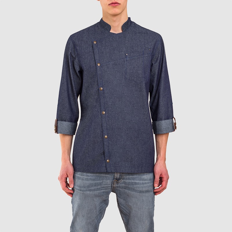 Designový jednořadý rondon, perfektní jak pro servis, tak do kuchyně. Extrémně slušivý střih, šikmé zapínání na kovové patenty. Kapsa ve švu s výpustkou a přihrádkou pro pero je zpevněná nýtky. Namáhané části jsou vyztužené.