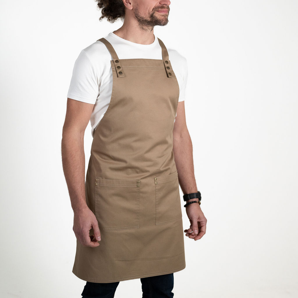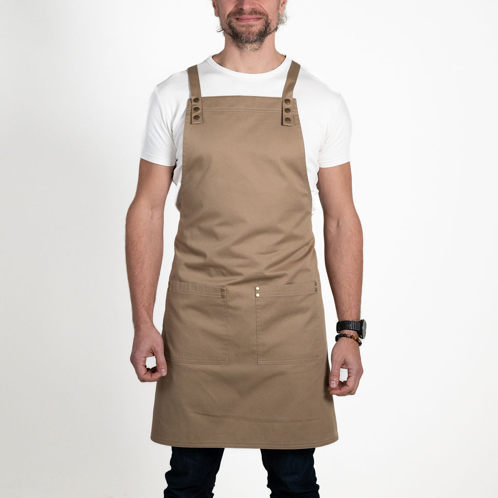 Funkční zástěra, s velmi pohodlnými zkříženými popruhy přes ramena a záda, která vám vydrží dlouhé roky i při denním používání jako nová.