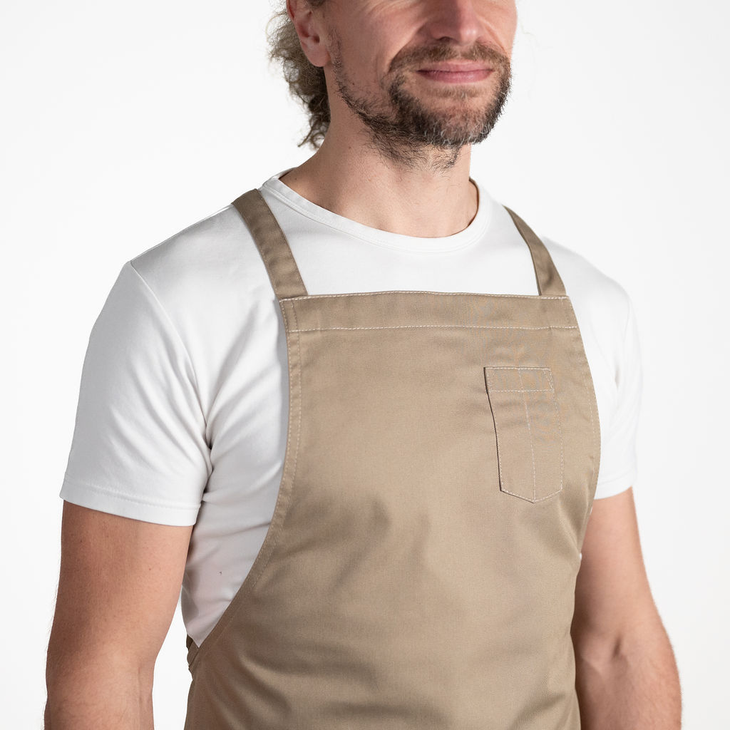 Prostředí profesionální kuchyně vyžaduje zástěry, které spojují eleganci, maximální pohodlí a funkcionalitu. Díky nastavitelným popruhům křížem přes záda dokáže přelstít gravitaci. Přizpůsobí se vaší postavě a celý den nebudete vědět o tom, že ji máte na sobě. Nešpinivá a hydrofobní nano úprava vám pomůže od kuchyňských skvrn a nečistot, jako jsou omáčky či tekutiny.