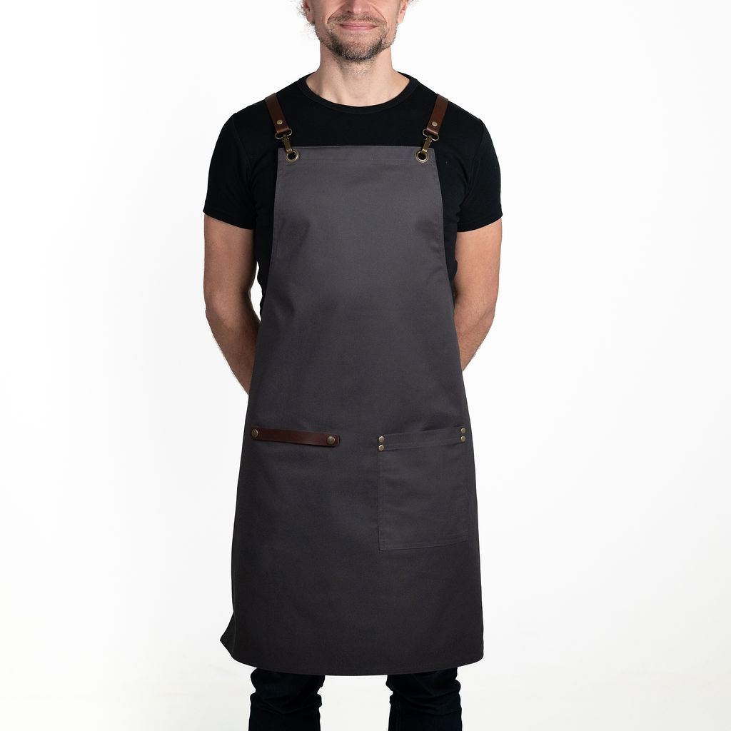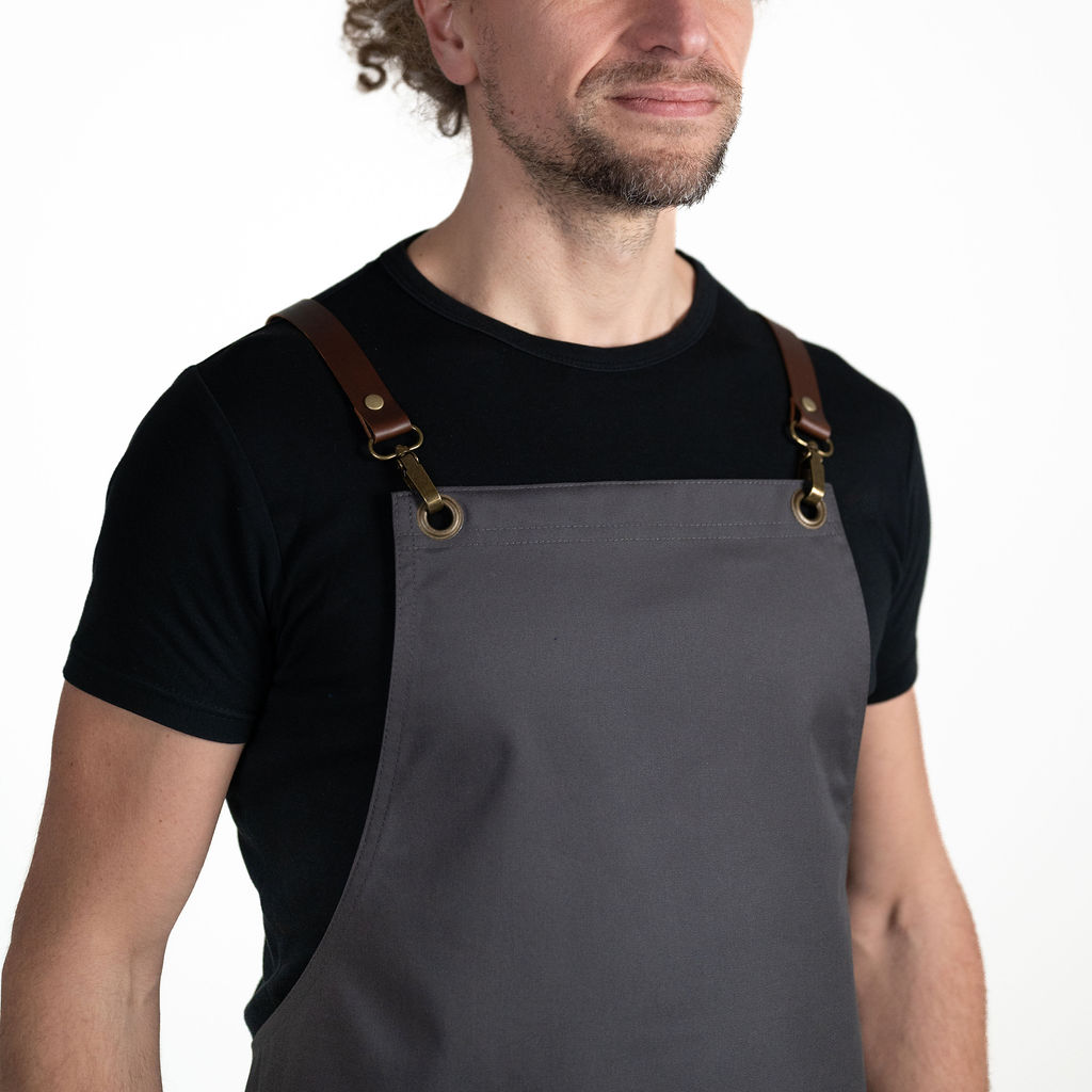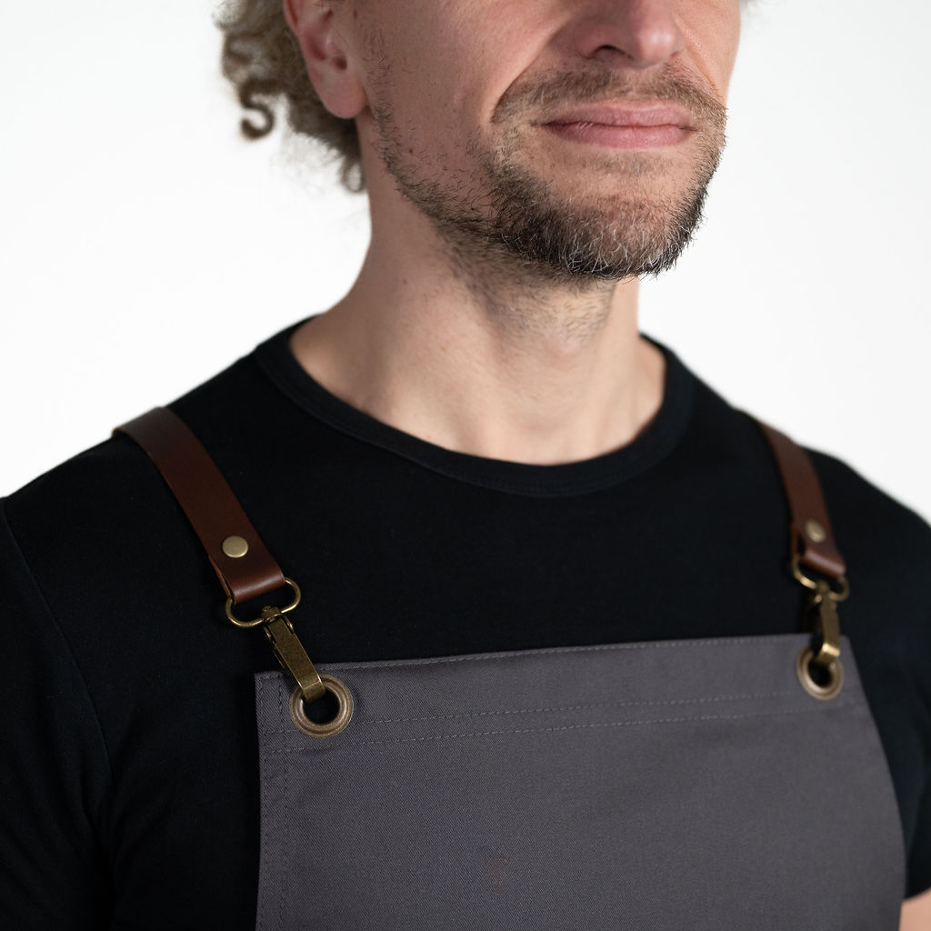 Kombinace materiálu s nešpinivou nano úpravou a té nejkvalitnější toskánské hovězí kůže zaručuje vaší zástěře nadstandardně dlouhou životnost, nádherný design a zároveň dokonalou funkčnost při práci s nápoji a potravinami včetně olejů.