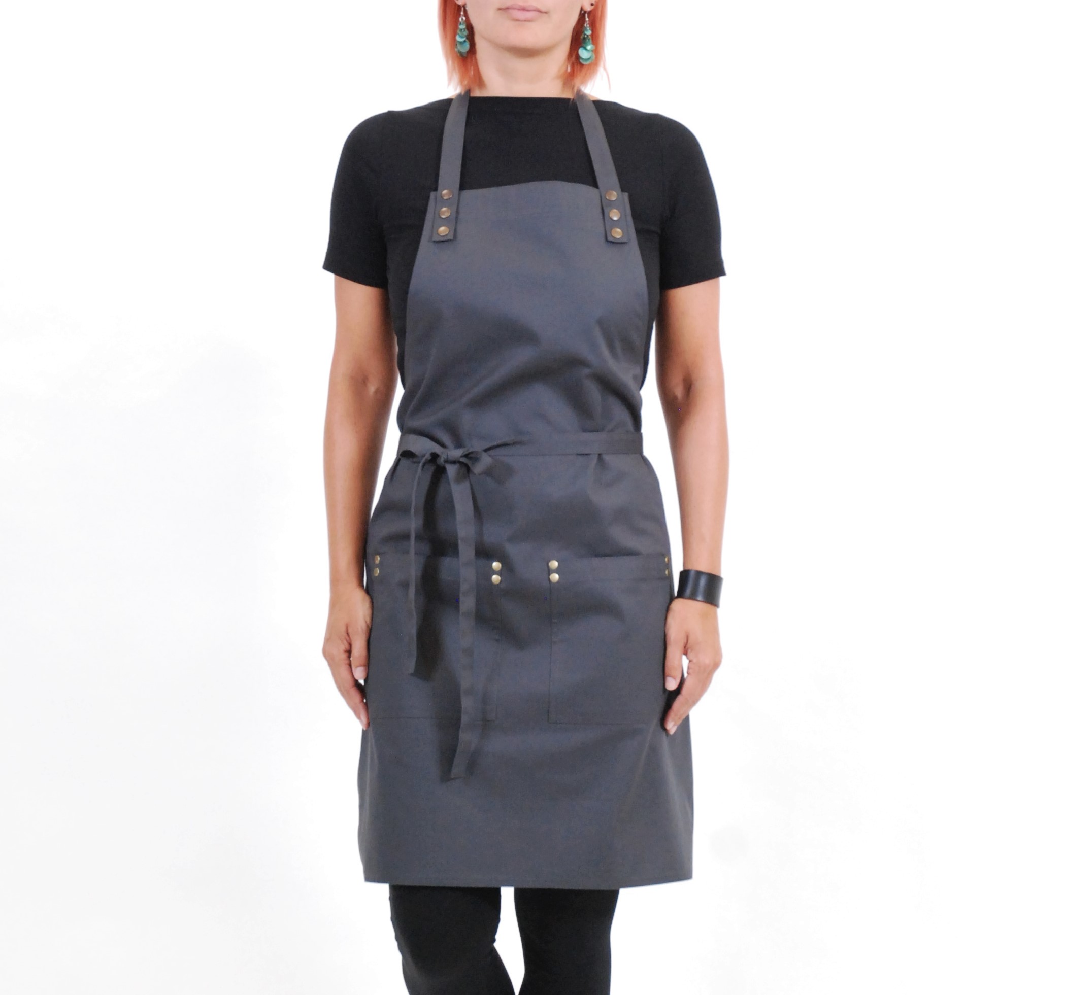 Zástěra SIMPLE vyniká svojí jednoduchou nenucenou elegancí. Popruh za krk má nastavitelnou délku. Upnutí na hrudníku je vždy na dva bytelné patenty. Zástěra má dvě nenápadné kapsy, které jsou zpevněny kovovými nýty, které zamezují vypárání kapsy z látky . Střih je univerzální a jako všechny naše modely dokonale padne mužům i ženám. Zástěru SIMPLE 2 standardně vyrábíme z antracitově šedého kepru se staromosaznými kovovými doplňky ve dvou velikostech.