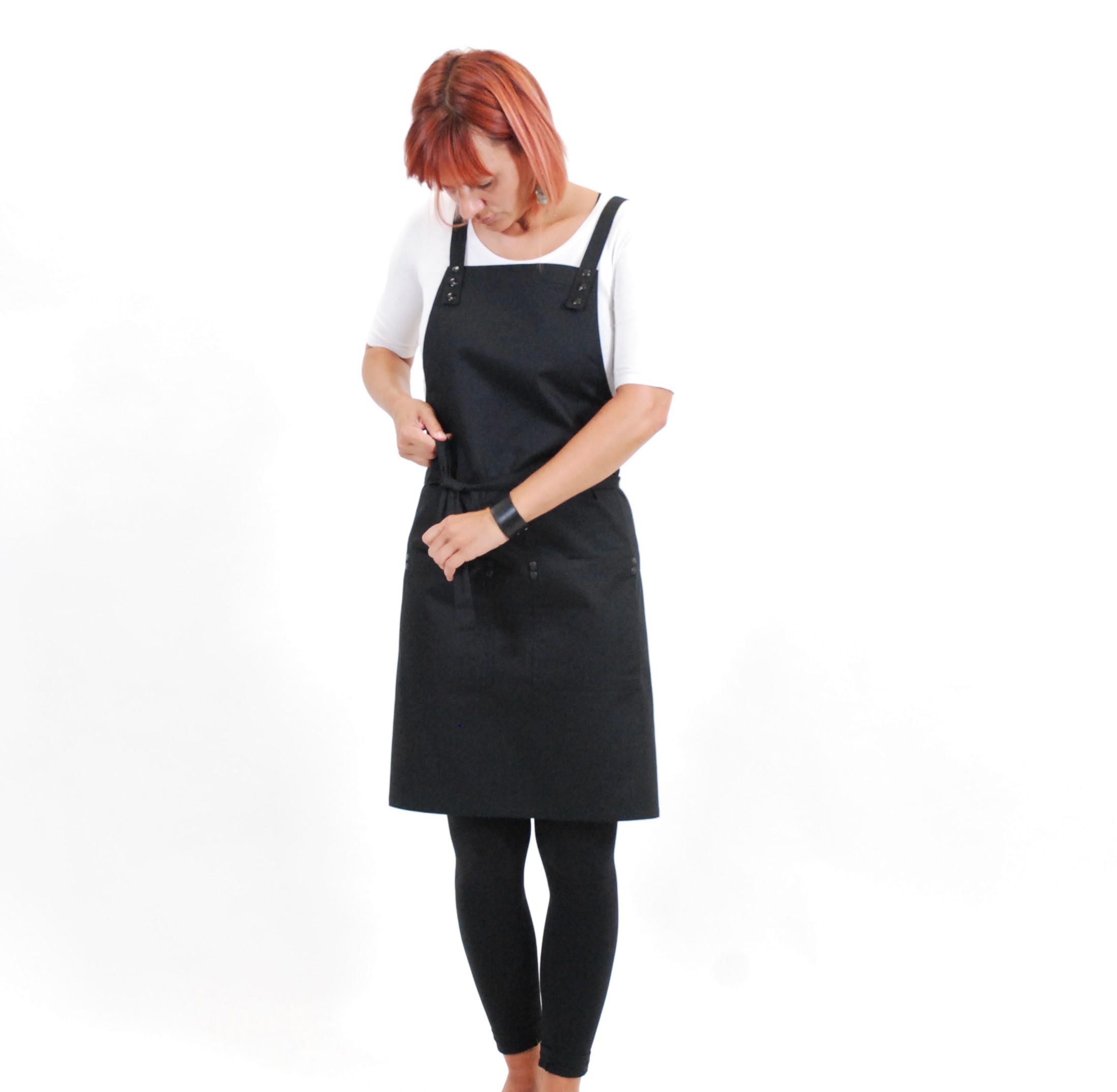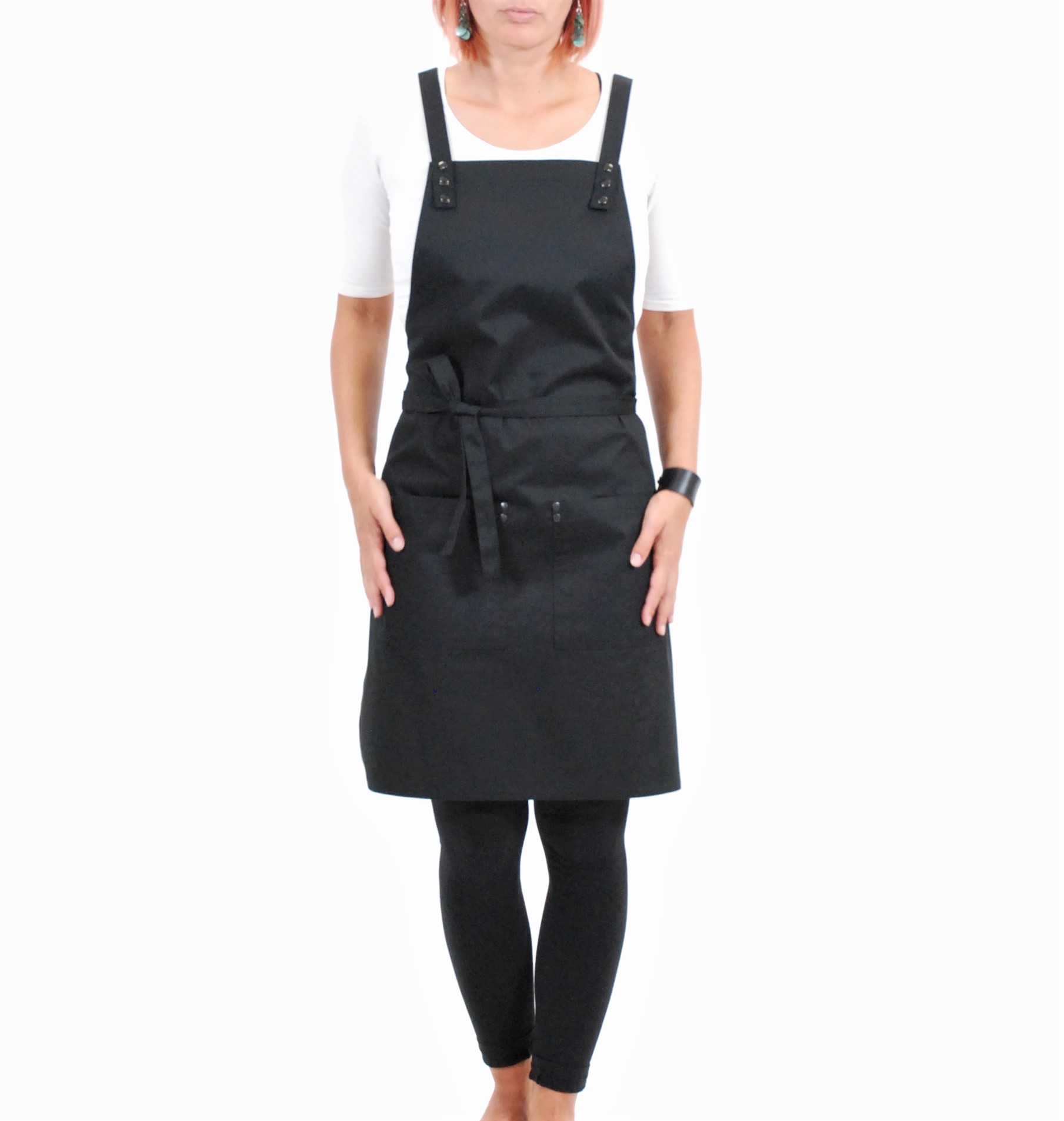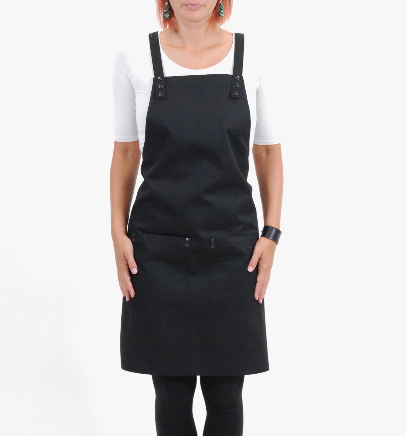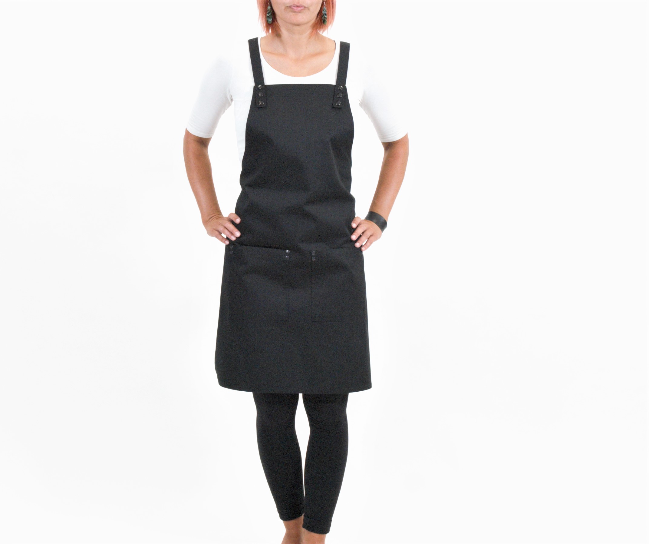 Zástěra SIMPLE vyniká svojí nenucenou elegancí. Popruhy křížem přes záda se velmi dobře a pohodlně nosí. Díky nim je zástěra velice variabilní na každou postavu. Upnutí na hrudníku je vždy na dva bytelné patenty. Zástěra má dvě nenápadné kapsy, které jsou zpevněny kovovými nýty, které zamezují vypárání kapsy z látky . Střih je univerzální a jako všechny naše modely dokonale padne mužům i ženám. Zástěru SIMPLE 1 standardně vyrábíme z černého kepru s kovovými doplňky v černém niklu a ve dvou velikostech.