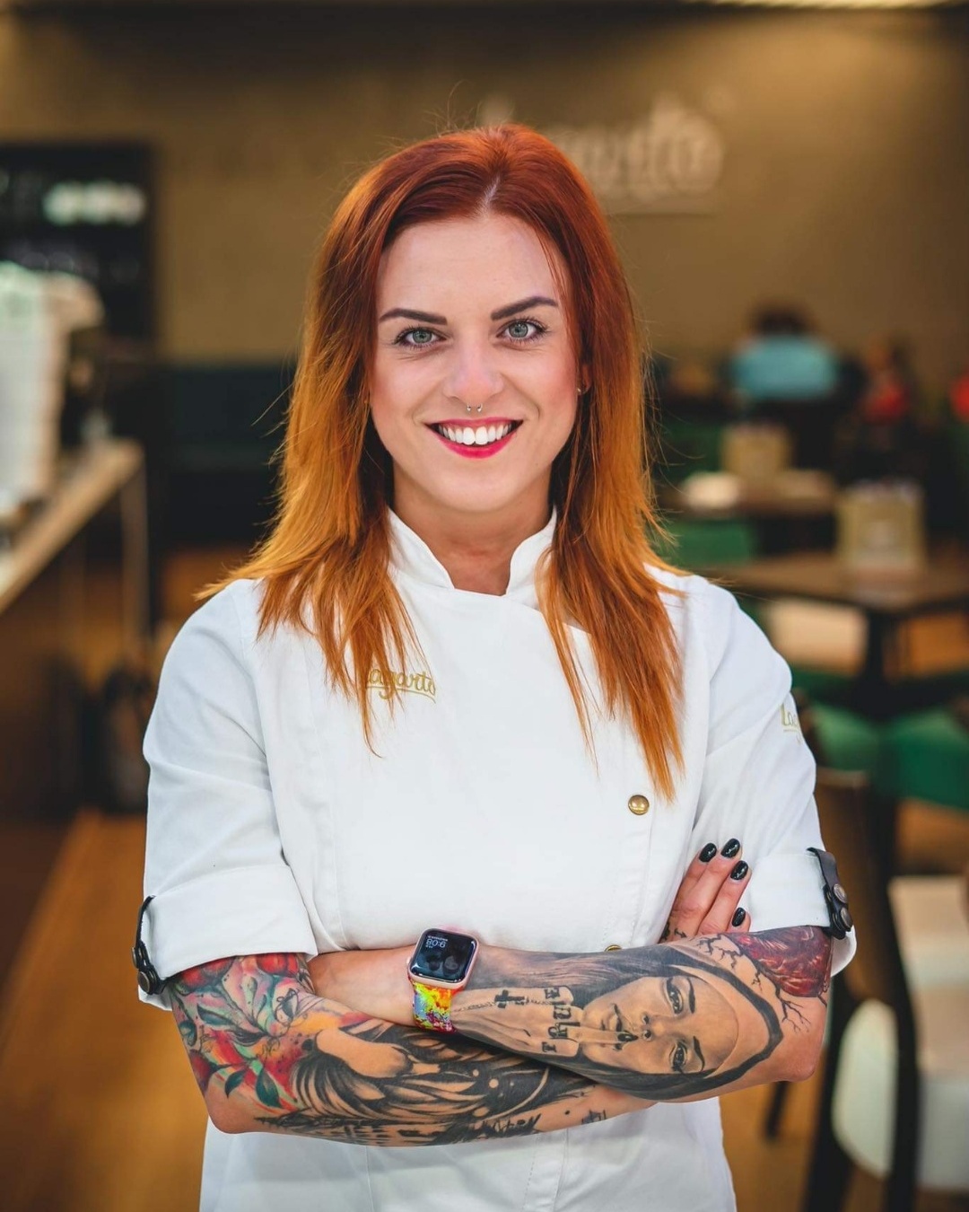 Designový jednořadý rondon, perfektní jak pro servis, tak do kuchyně. Extrémně slušivý střih, šikmé zapínání na kovové patenty. Kapsa na rukávu s přihrádkou pro pero je zpevněná nýtky. Namáhané části jsou vyztužené.