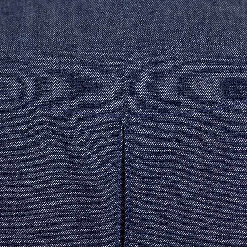 Dvě možné polohy délky rukávu jistí efektní manžeta z hovězí usně. Funkční protizáhyb na zádech umožňuje volný pohyb a přitom drží tvar rondonu.