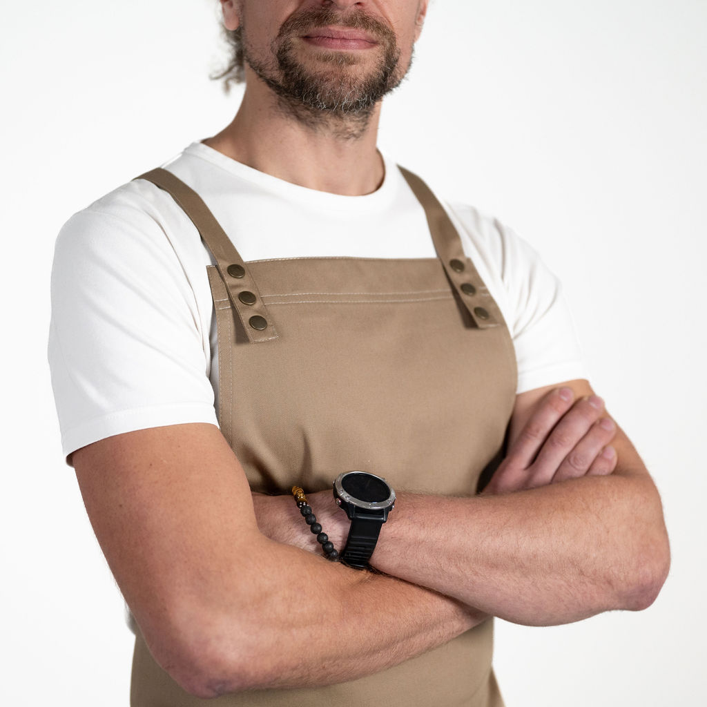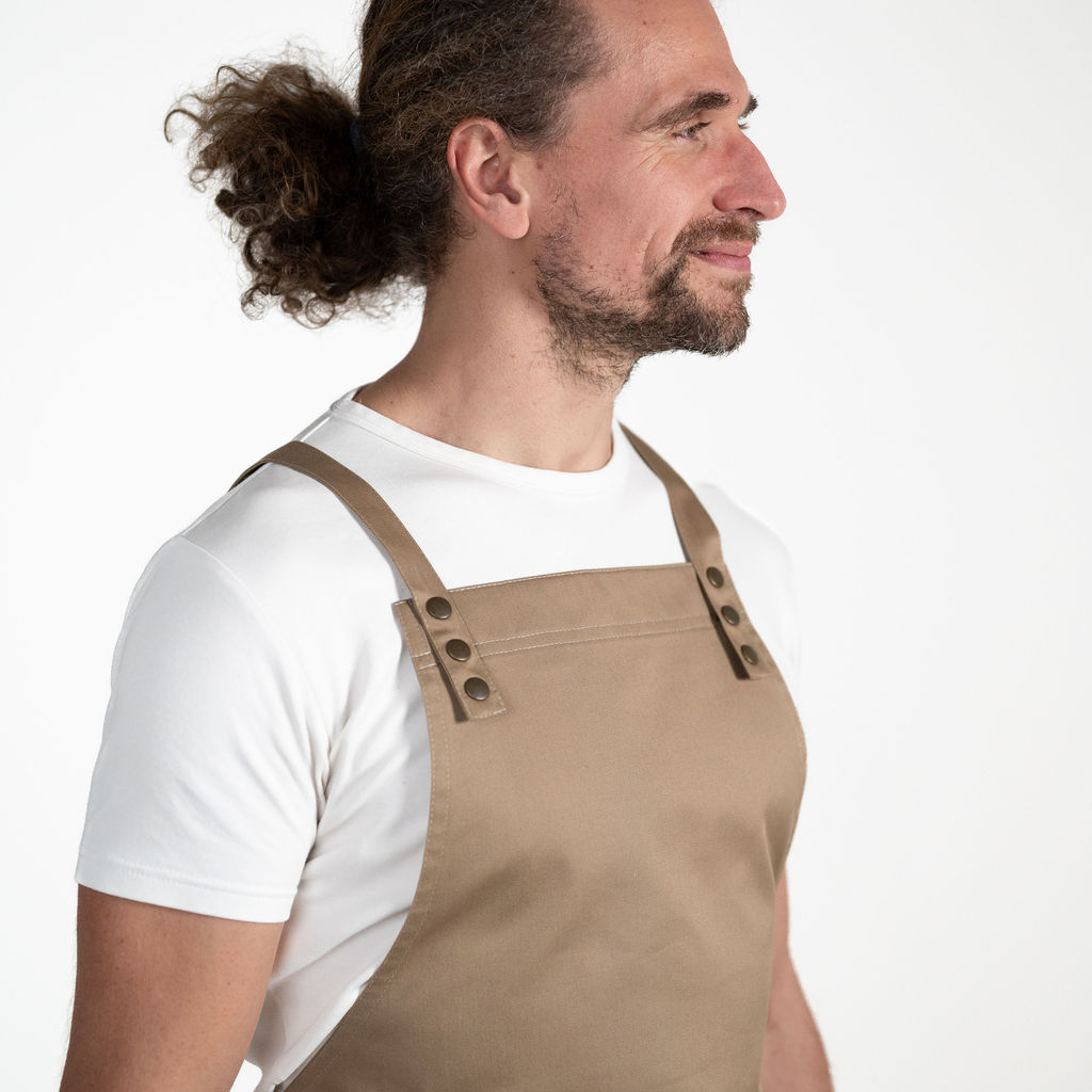 Funkční zástěra, s velmi pohodlnými zkříženými popruhy přes ramena a záda, která vám vydrží dlouhé roky i při denním používání jako nová.