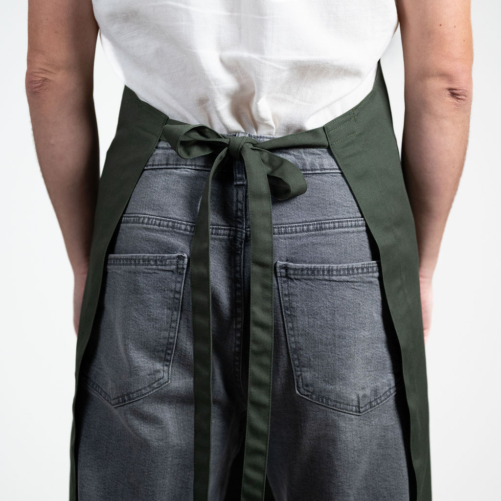 Pro ty, kdo mají nejraději zástěry s vázáním za krk a v pase. Pokud jste si nezvykli na zástěry křížem přes záda nebo vám pro vaření v kuchyni jednoduše nevyhovují, máme pro vás tuto elegantní zástěru. Variabilní popruh za krk a klasické vázání v pase (možnost uvázat mašli jak vzadu tak vpředu nebo schované pod zástěrou).