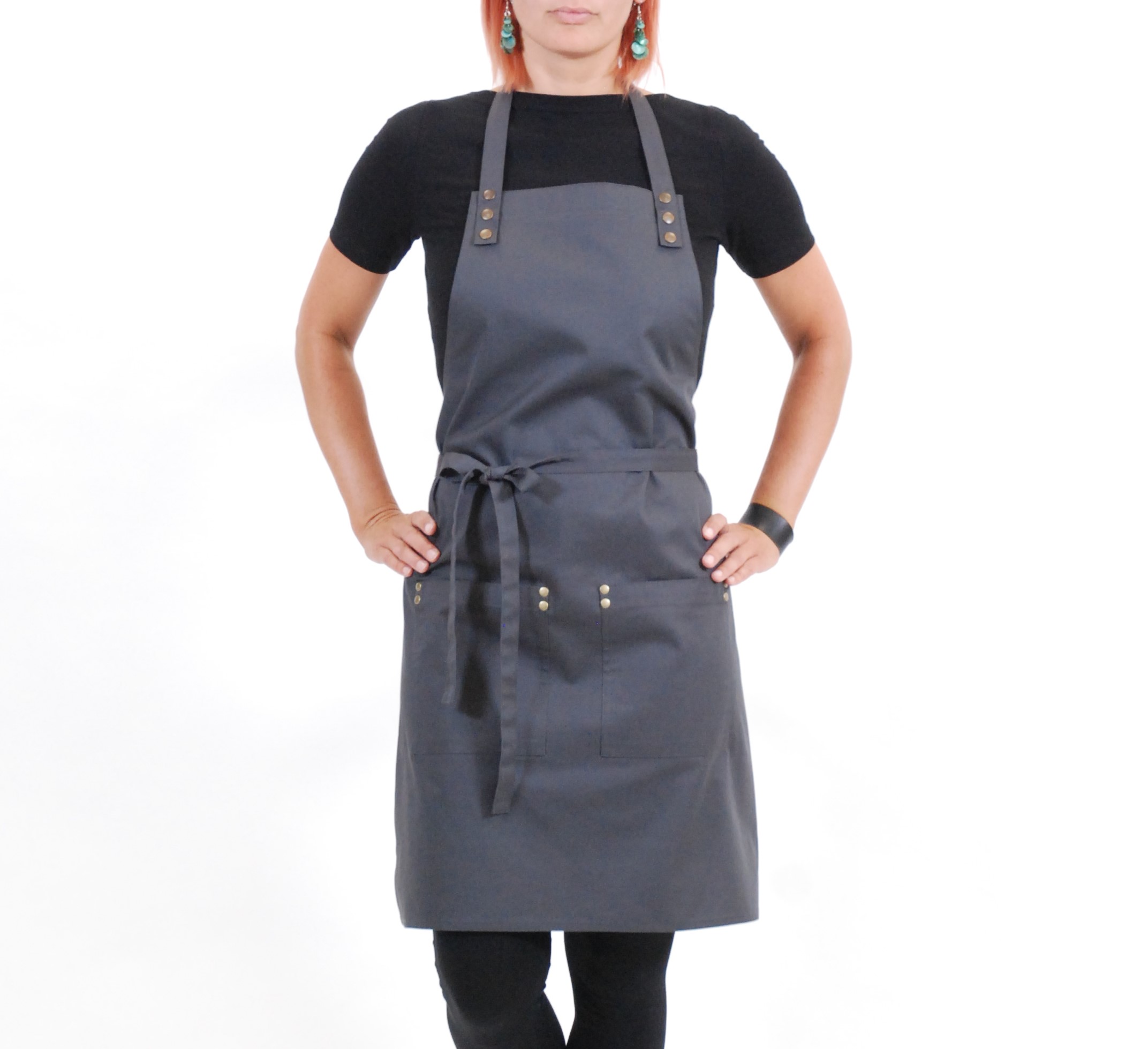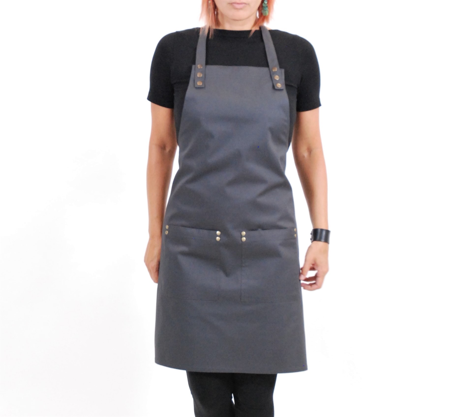 Zástěra SIMPLE vyniká svojí jednoduchou nenucenou elegancí. Popruh za krk má nastavitelnou délku. Upnutí na hrudníku je vždy na dva bytelné patenty. Zástěra má dvě nenápadné kapsy, které jsou zpevněny kovovými nýty, které zamezují vypárání kapsy z látky . Střih je univerzální a jako všechny naše modely dokonale padne mužům i ženám. Zástěru SIMPLE 2 standardně vyrábíme z antracitově šedého kepru se staromosaznými kovovými doplňky ve dvou velikostech.