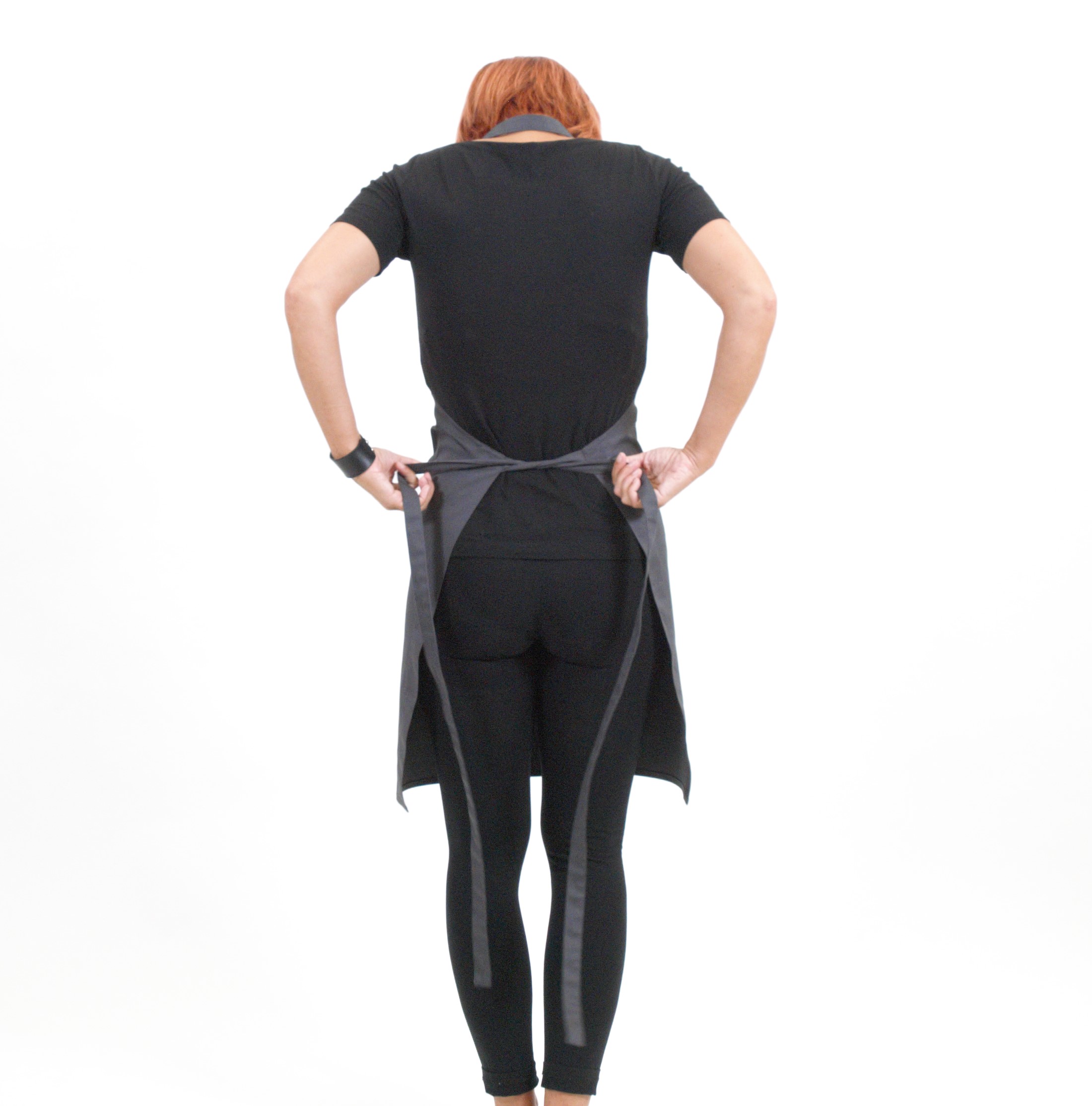 Modelka na obrázku je vysoká 170 cm, její standardní velikost je M - L a na sobě má zástěru ve velikosti UNI.